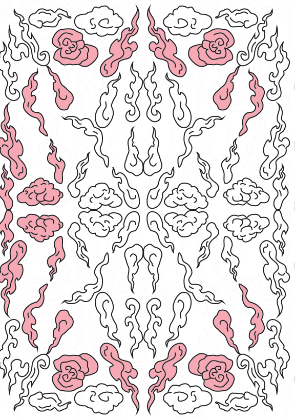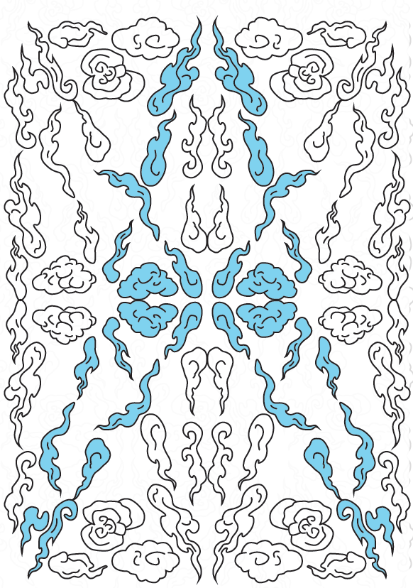 Then I looked through some of the paintings and based my design on the background clouds and fire.